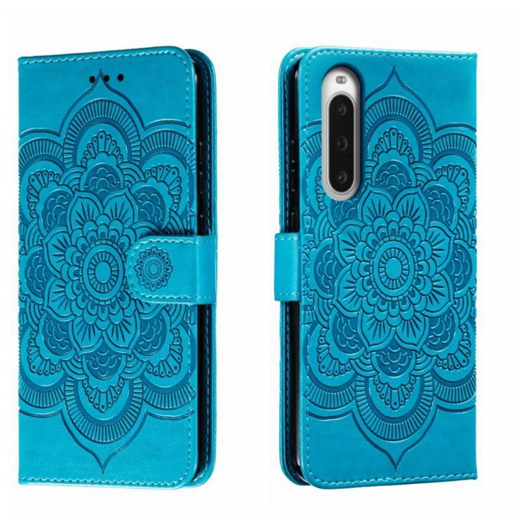 Funda de Cuero para Sony Xperia 10 V con Patrón en Relieve Sun Mandala (Azul)