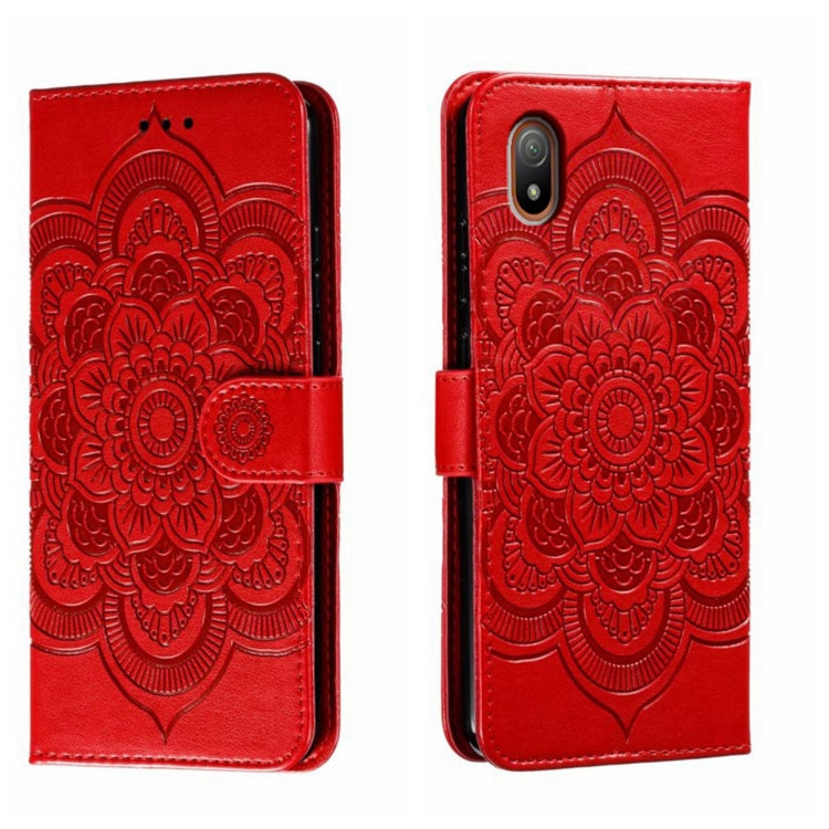 Funda de Cuero para Sony Xperia Ace III con Patrón En Relieve Sun Mandala (Rojo)