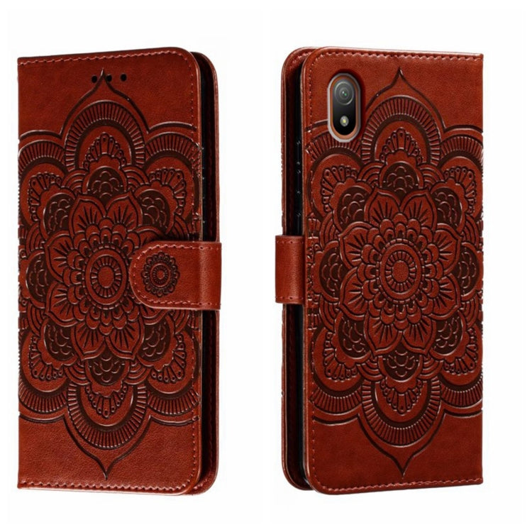 Funda de Cuero para Sony Xperia Ace III con Patrón en Relieve Sun Mandala (Marrón)