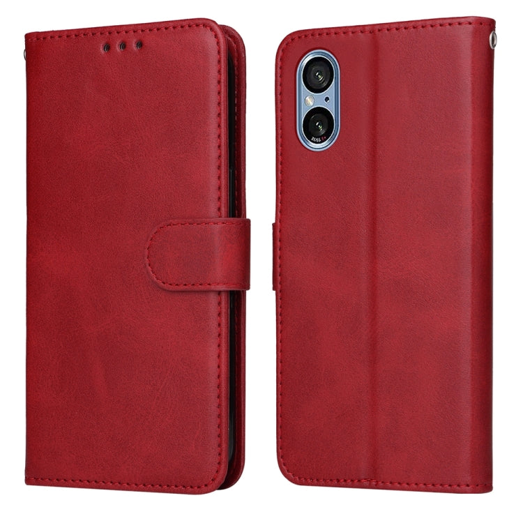 Funda de Cuero para Sony Xperia 5 V Classic con Tapa y Textura de Becerro (Rojo)