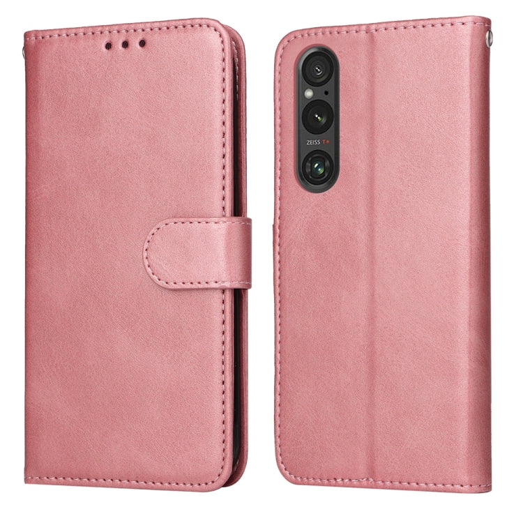 Funda de Cuero para Sony Xperia 1 V Classic con Tapa y Textura de Becerro (Oro Rosa)