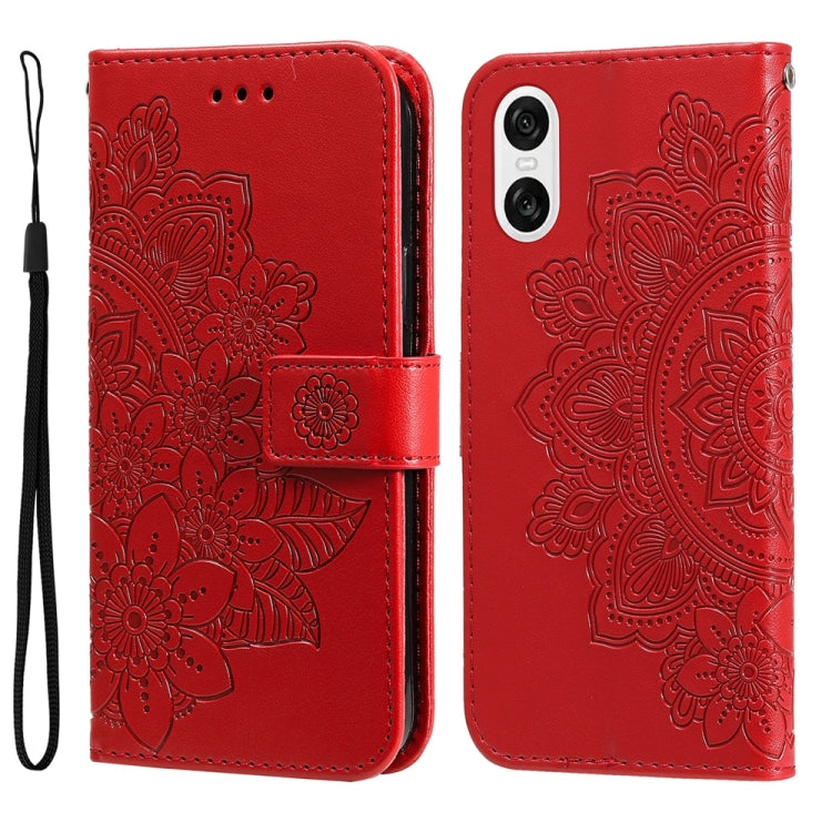 Funda de Cuero para Sony Xperia 10 Vi con Estampado de Flores de 7 Pétalos (Roja)