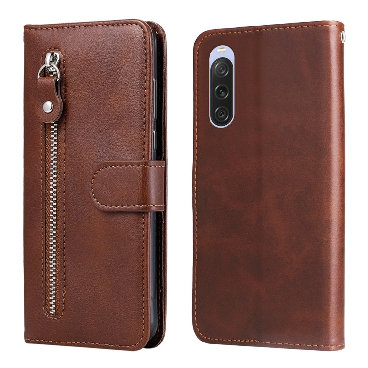 Funda para Sony Xperia 10 V de Cuero con Cremallera y Textura de Becerro (Marrón)