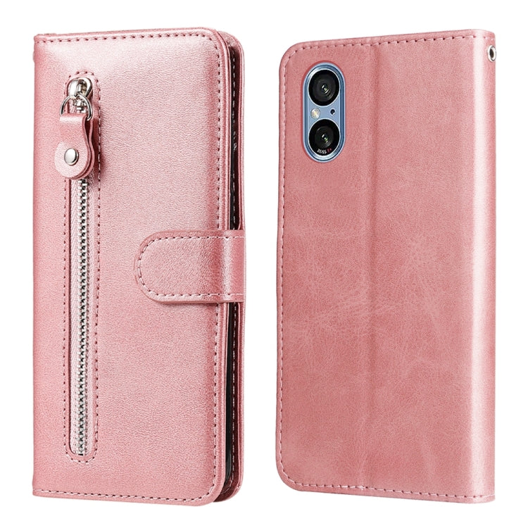 Estuche para Sony Xperia 5 V de Cuero con Cremallera y Textura de Becerro (Oro Rosa)
