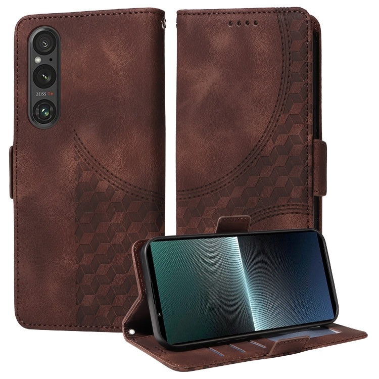 Funda de Cuero para Sony Xperia 1 V con Rombos En Relieve Estrellado (Marrón)