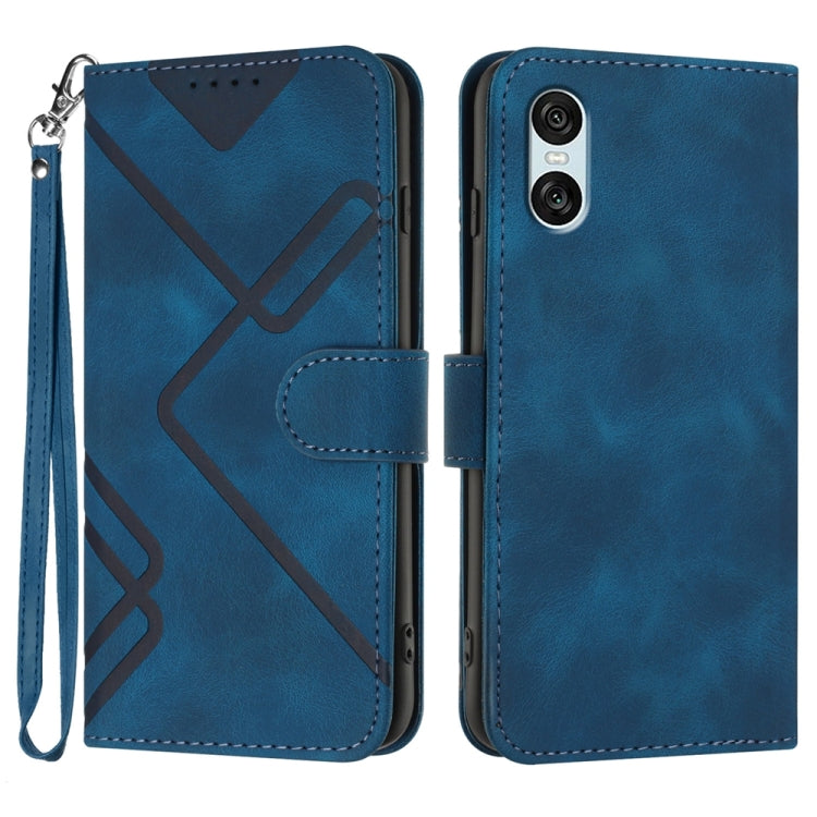 Funda de Cuero para Sony Xperia 10 Vi con Textura Line Pattern (Azul Real)