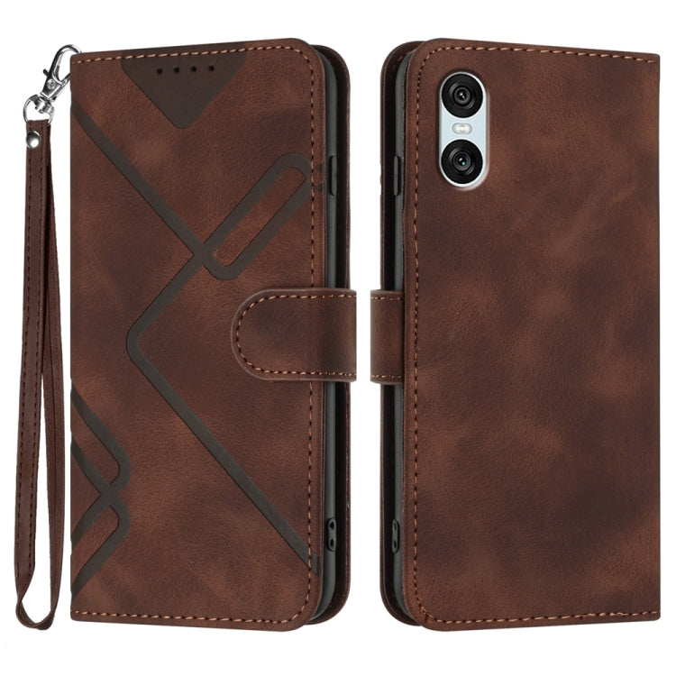 Funda de Cuero para Sony Xperia 10 Vi con Diseño Line Pattern Skin Feel (Café)