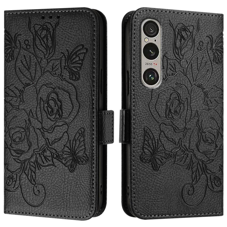 Funda de Teléfono para Sony Xperia 1 Vi Cuero Antirrobo RFID con Relieve (Negro)