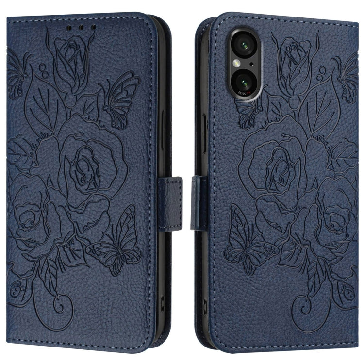 Funda de Cuero Antirrobo RFID para Sony Xperia 5 V con Relieve (Azul Oscuro)