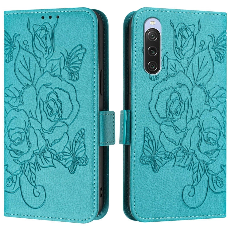 Funda de Cuero Antirrobo RFID para Sony Xperia 10 V 4G con Relieve (Azul Claro)