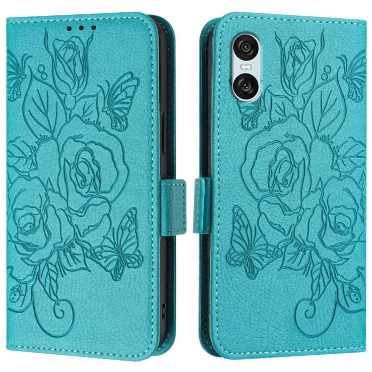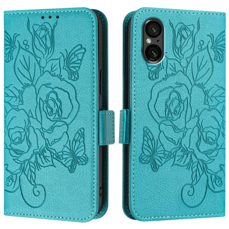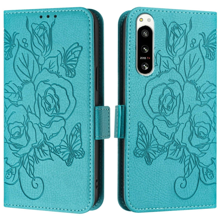 Funda de Cuero Antirrobo para Sony Xperia 5 IV con RFID Rose en Relieve (Azul Claro)