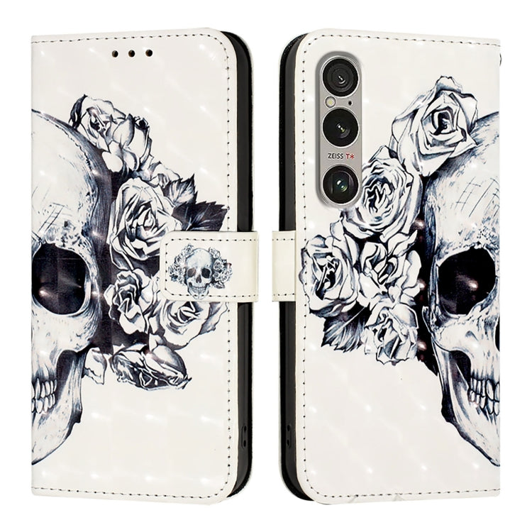 Funda para Sony Xperia 1 Vi de Cuero con Tapa Horizontal y Pintura 3D Calavera