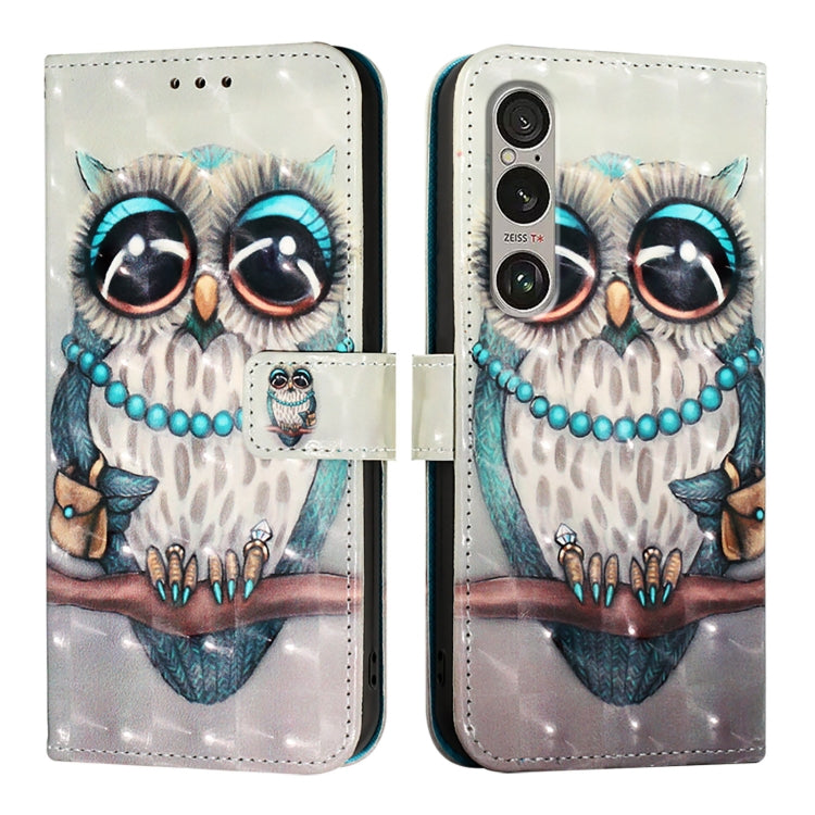 Funda para Sony Xperia 1 Vi de Cuero con Tapa Horizontal y Pintura 3D (Búho Gris)