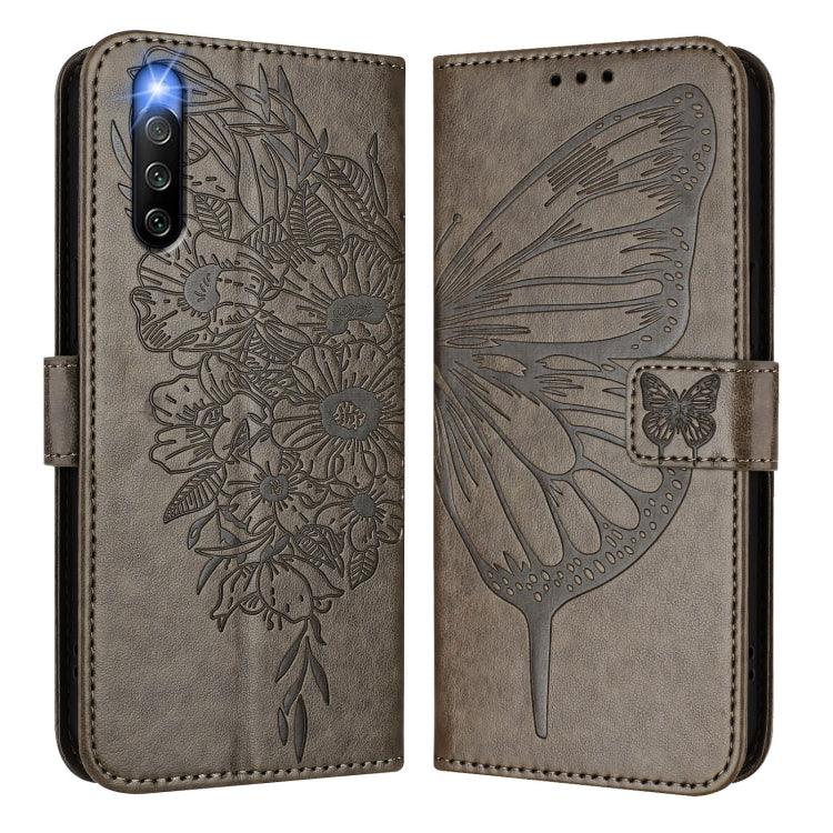 Funda de Cuero para Sony Xperia 10 Iv con Diseño de Mariposa En Relieve (Gris)