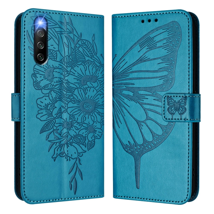 Funda de Cuero para Sony Xperia 10 Iv con Diseño de Mariposa En Relieve (Azul)