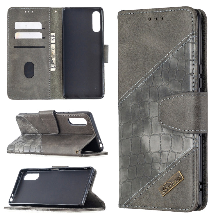 Funda Cuero PU Sony Xperia L4 Textura Cocodrilo con Billetera y Soporte (Gris)