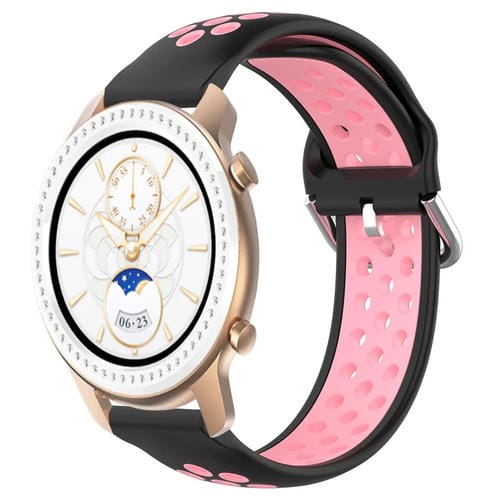 Banda de Reloj Amazfit GTR 42mm 20mm Silicona Deportiva Perforada (Negro + Rosa)