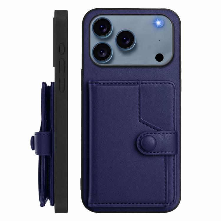 Funda antirrobo RFID con botón y tarjetero para iPhone 17 Pro Max (azul)