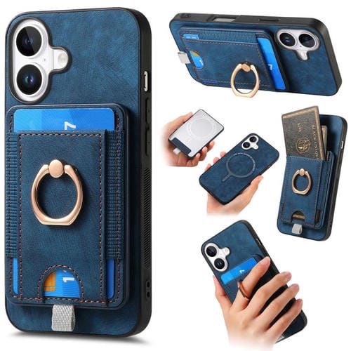 Funda de fibra de carbono con anillo para tarjeta para iPhone 17 (azul)