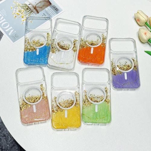 Funda híbrida de TPU transparente MagSafe dorada para iPhone 17 (morada)