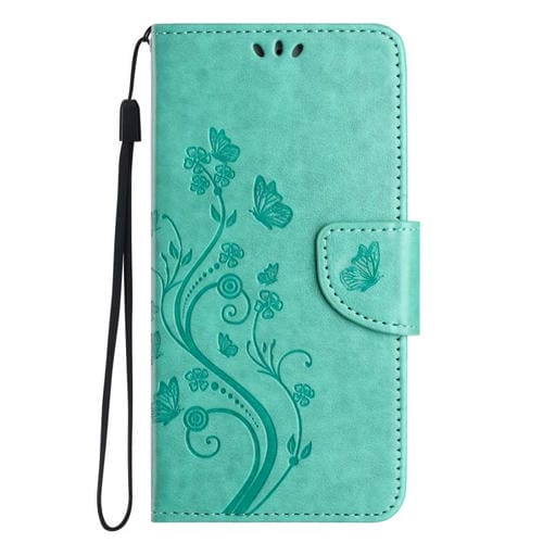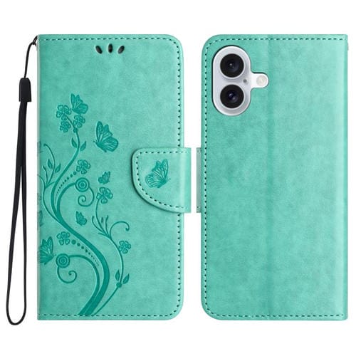 Funda de cuero con tapa y diseño de mariposas y flores para iPhone 17 (verde)