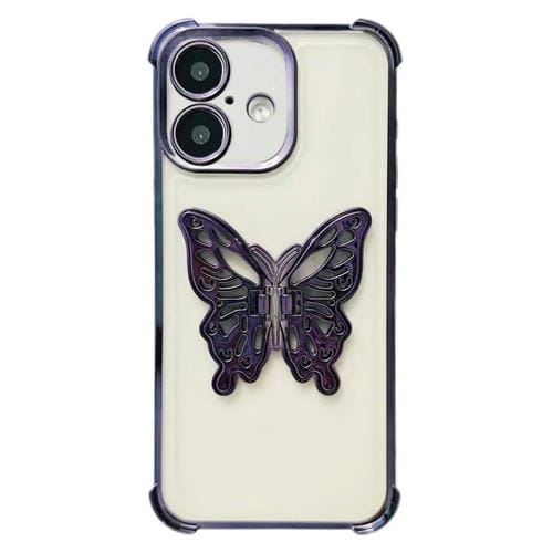 Funda de TPU con diseño de mariposa 3D galvanizada para iPhone 17 (morada)