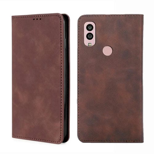 Funda Magnética de Cuero para Kyocera Digno Sx3-Kyg02 Skin Feel (Marrón Oscuro)