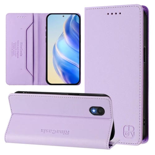 Funda Cuero Rfid Succión Magnética Doble Pliegue para TCL 201 Rc01 (Morado Claro)