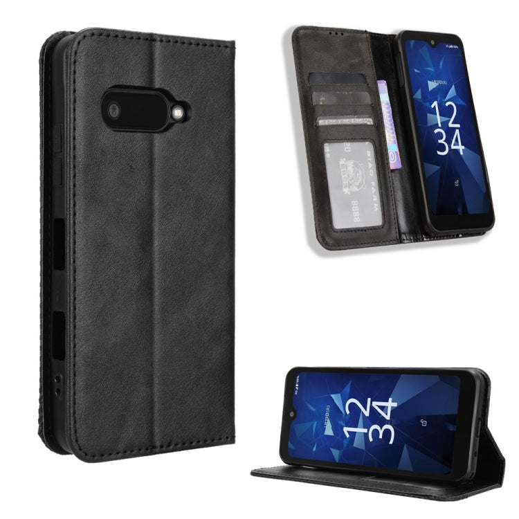 Funda de Cuero Kyocera Digno Sx4 Textura Retro Hebilla Magnética (Negro)