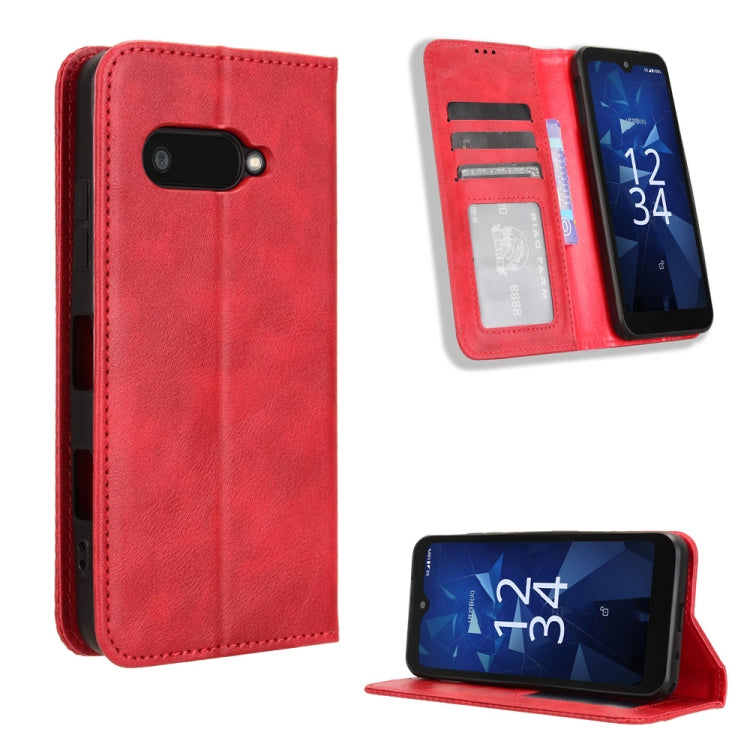 Funda de Cuero Kyocera Digno Sx4 con Textura Retro y Hebilla Magnética (Rojo)