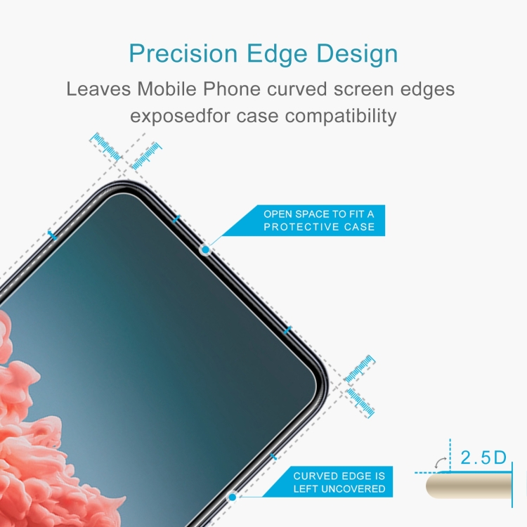 3. Alinee cuidadosamente el vidrio a la pantalla.