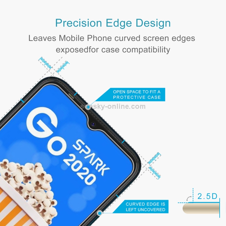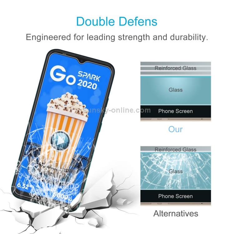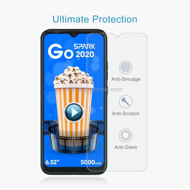 50 PCs Película de Vidrio Templado Tecno Spark Go 2020 0.26mm 9H 2.5D