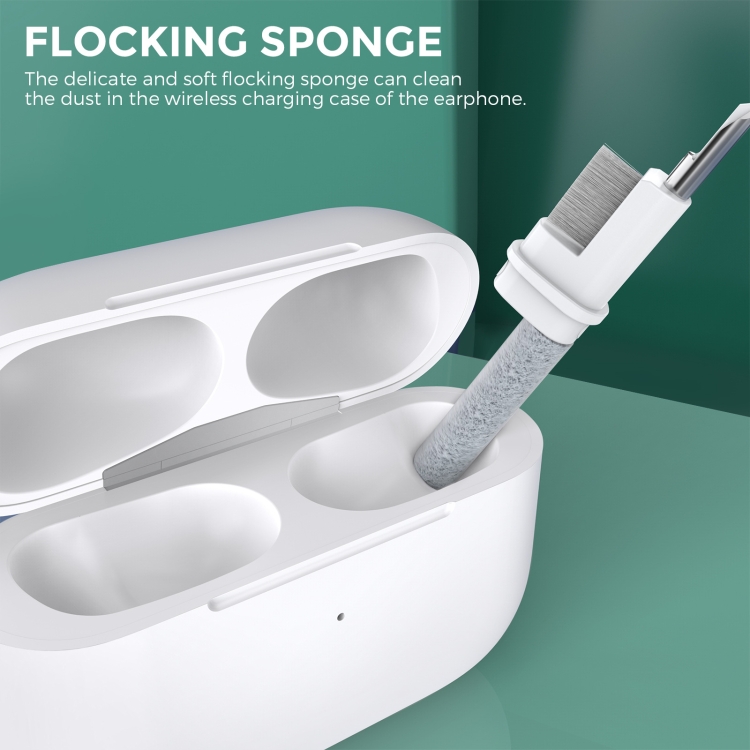 4. Esponja flocada: puede limpiar el polvo dentro del estuche de carga inalámbrica de los auriculares