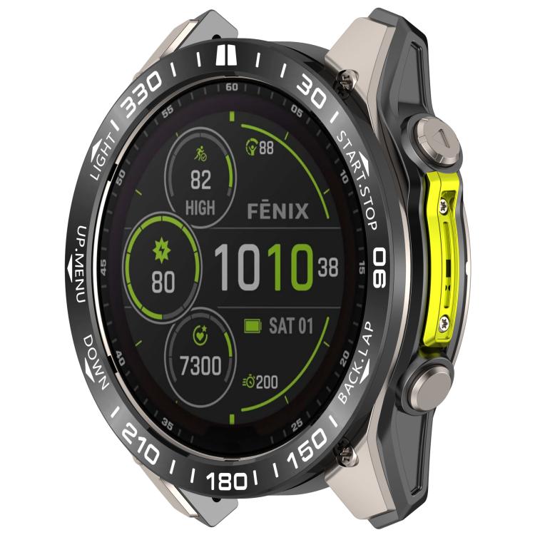 Anillo protector de acero inoxidable para reloj Garmin Fenix 8 AMOLED de 47 mm (Compete Speed, negro y blanco)