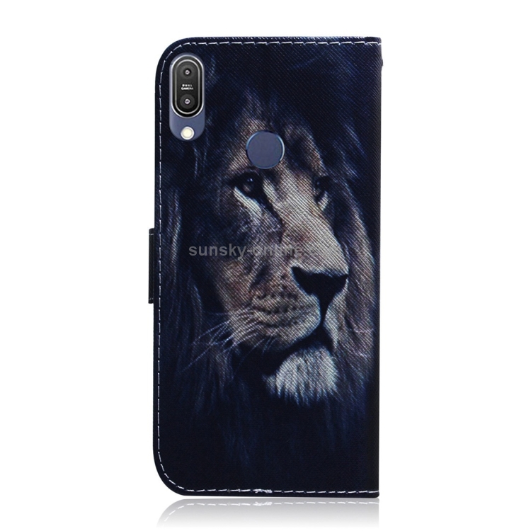 Funda de Cuero Asus Zenfone Max Pro (M1) ZB601KL con Tapa Horizontal, Dibujo León, Soporte, Ranuras y Billetera
