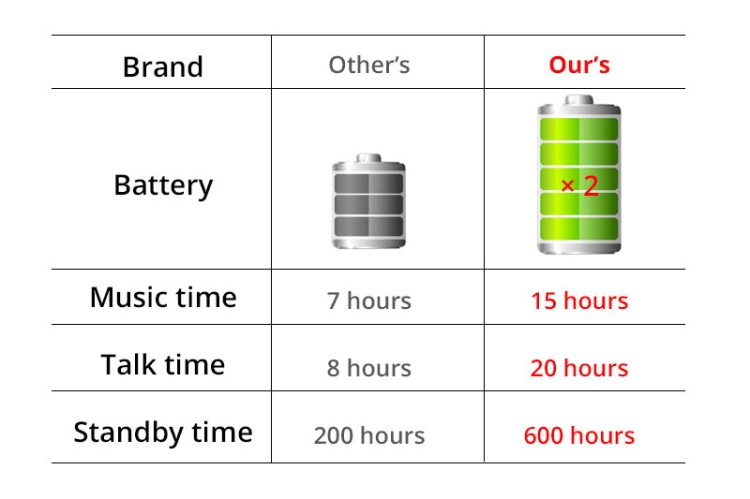 1.Larga duración de la batería, batería de gran capacidad 15 horas de reproducción de música Disfrute de la música durante todo el día, recárguela fácilmente a través del micro USB después