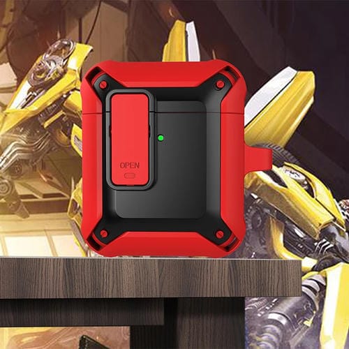 Auriculares inalámbricos funda protectora silicona a prueba de golpes con interruptor para AirPods 1/2 (Rojo Negro)
