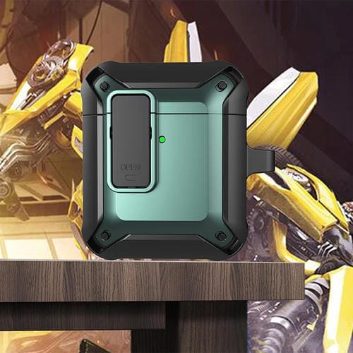 Funda Protectora De Silicona Para Auriculares Inalámbricos Airpods 1/2 Con Interruptor (Verde Negro)