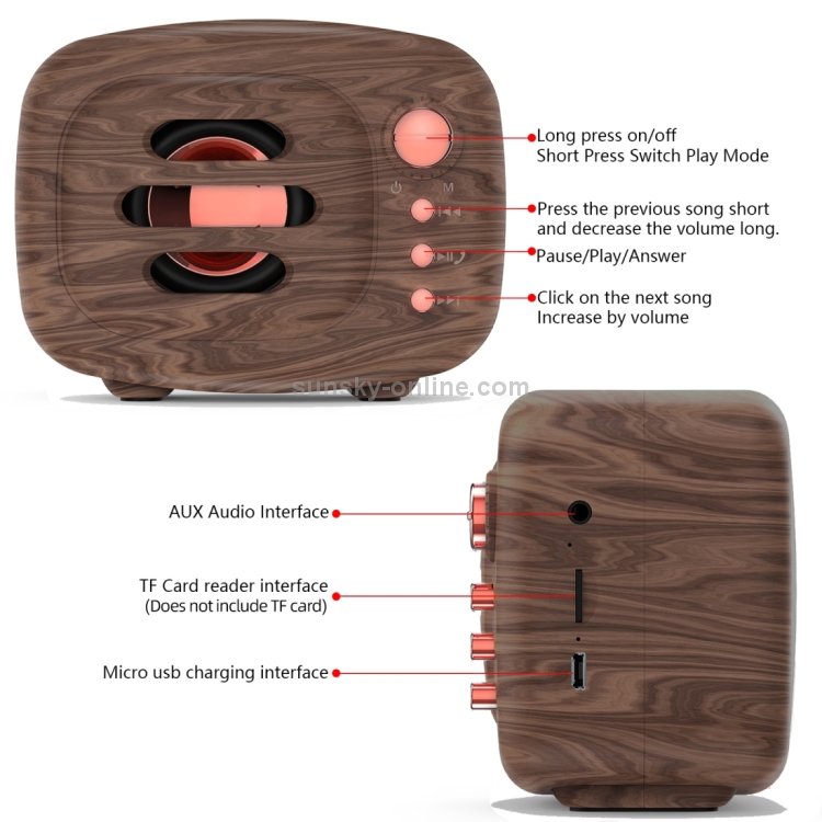 Altavoz Bluetooth B11 Bluetooth 5.0 Estilo Retro Llamadas Manos Libres Tarjeta TF 32 Gb Conector 3,5 Mm (Madera)