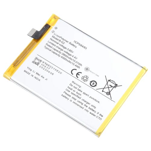 La Batería de repuesto para Vivo V15 modelo B-G2 (2023) es una unidad de polímero de litio con una capacidad de 4000 mAh diseñada para restaurar la autonomía Original del dispositivo. Este componente es compatible exclusivamente con el modelo Vivo V15, proporcionando una fuente de energía confiable y duradera para el Teléfono Móvil. Su función principal es reemplazar la Batería desgastada o defectuosa, asegurando un rendimiento óptimo y prolongando la vida útil del equipo. La Batería está fabricada para enCajar perfectamente en el compartimento interno del Vivo V15, garantizando una instalación segura y eficaz cuando es realizada por profesionales o usuarios con conocimientos técnicos adecuados.