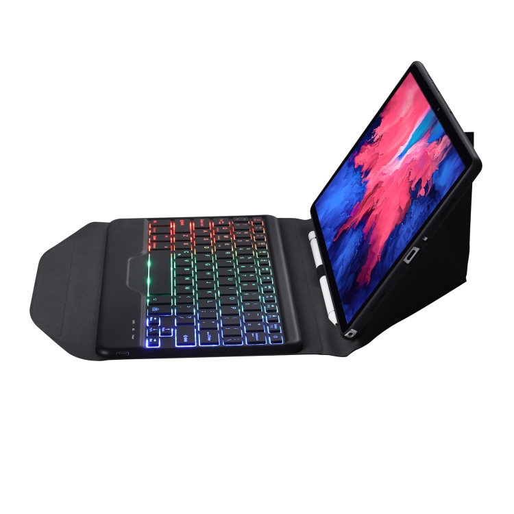 - 1x Teclado Bluetooth Desmontable Bm12S Fightlight Edition con Funda de Cuero y Soporte para Lenovo Pad Plus 11" TB-J607F / Tab P11 TB-J606F (Negro)