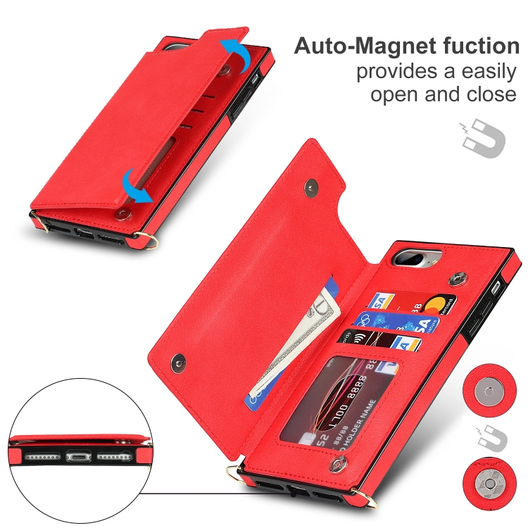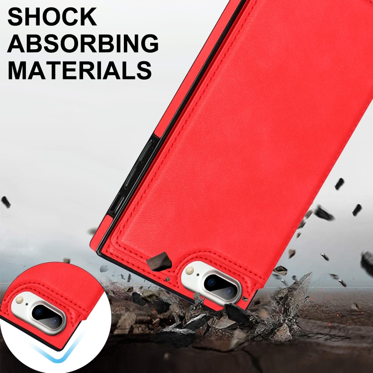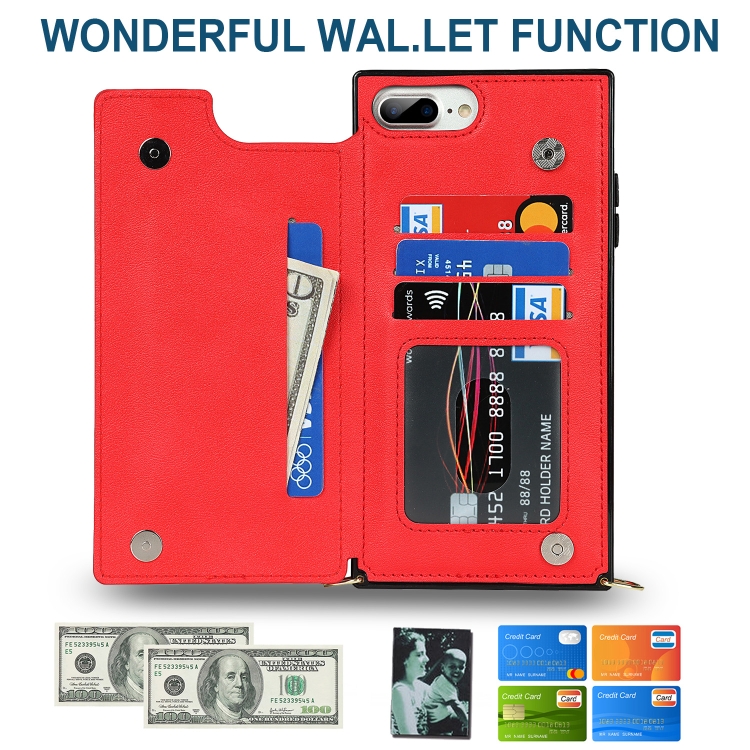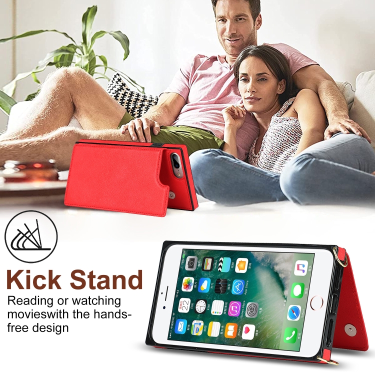 Bolsa de tarjetas iPhone 8 Plus 7 Plus TPU y PU con tapa doble hebilla y ranuras (Rojo)