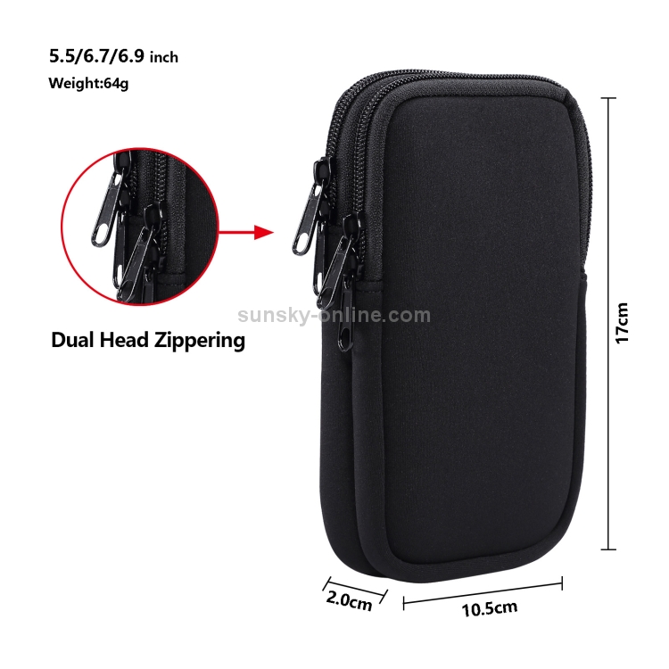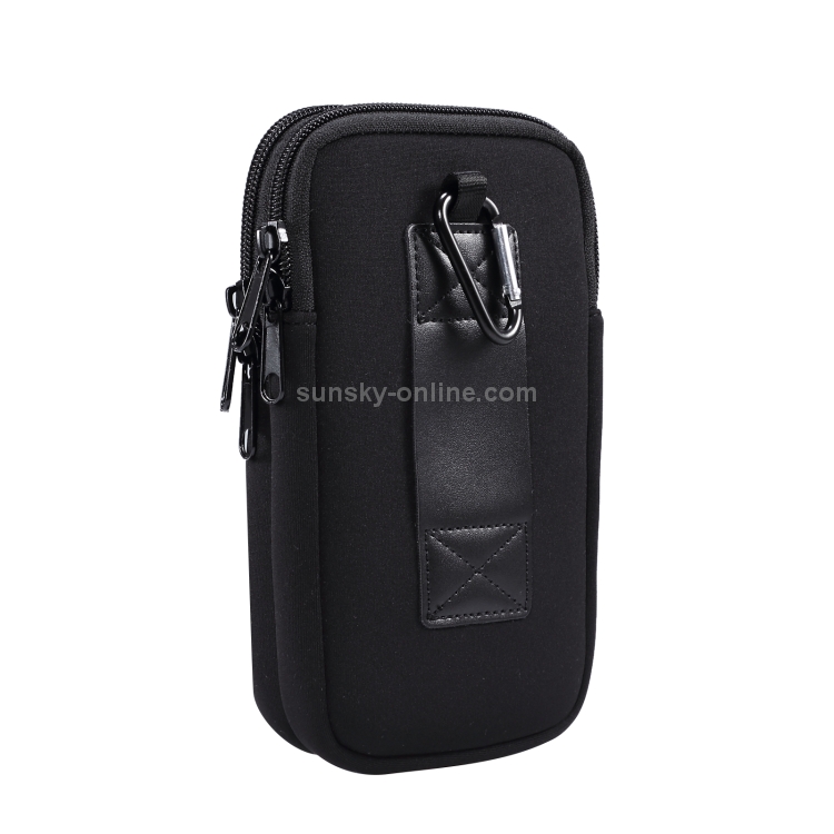 Bolso de Cintura Colgante Elástico Doble Compartimento Universal para Teléfonos 6,9 Pulgadas (Negro)