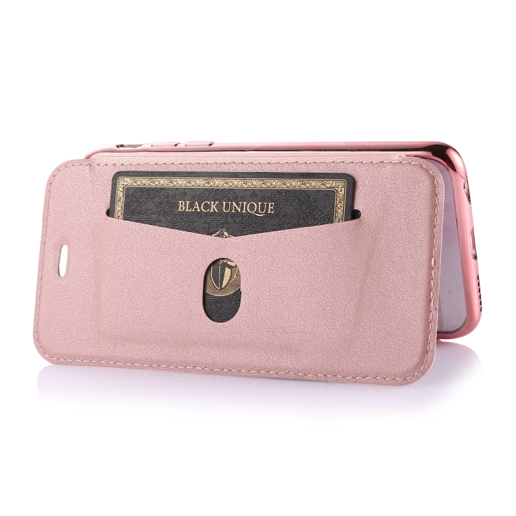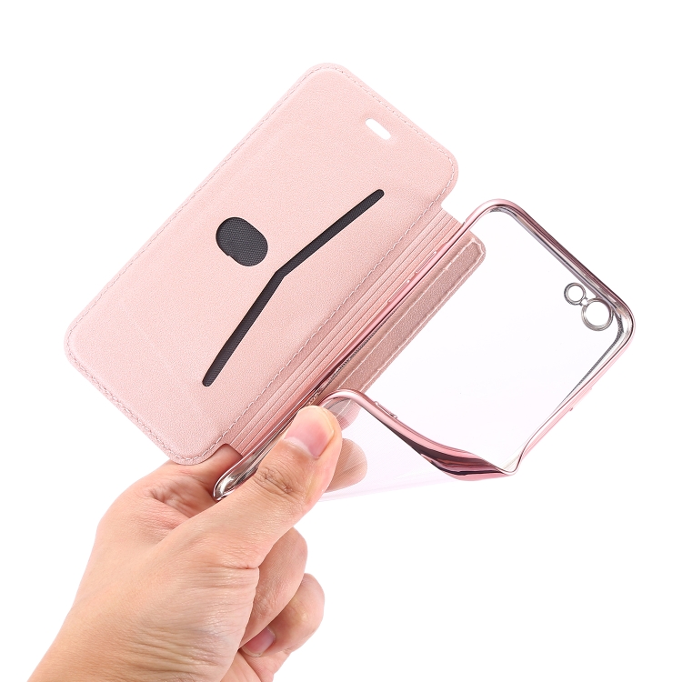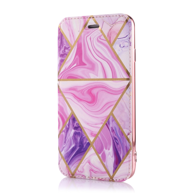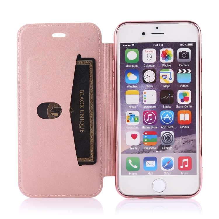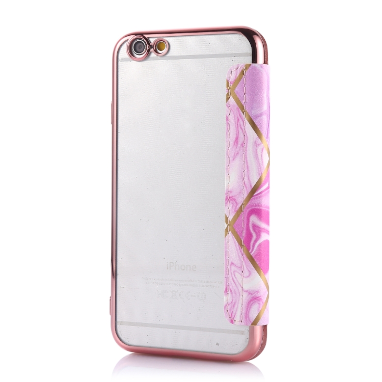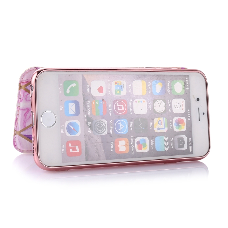 Funda de Cuero Horizontal Flip Bronceing Plating PU + TPU para iPhone 6 y 6S con Soporte y Ranura para Tarjeta (Pink Purple)