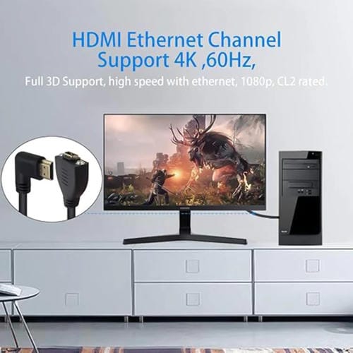 Cable de extensión fijo HDMI macho a hembra, versión 2.0, 4K 60 Hz, con orificios para tornillos, longitud: 0,2 m (codo inferior)