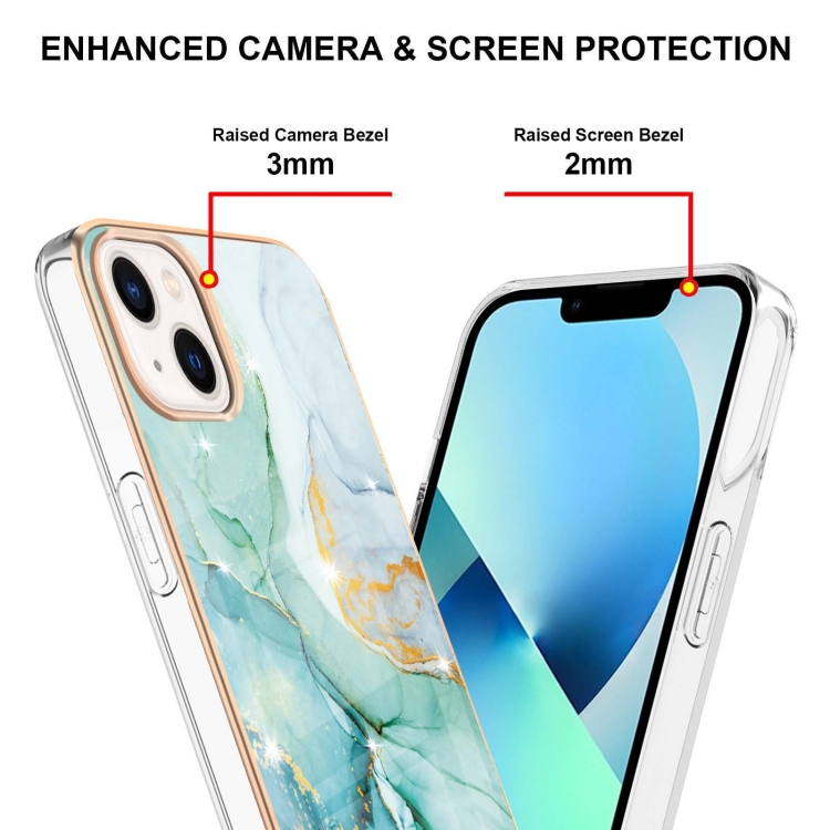 Caja del Teléfono a Prueba de Golpes Imd TPU Doble Cara Patrón Mármol Galvanizado para iPhone 15 (Verde)