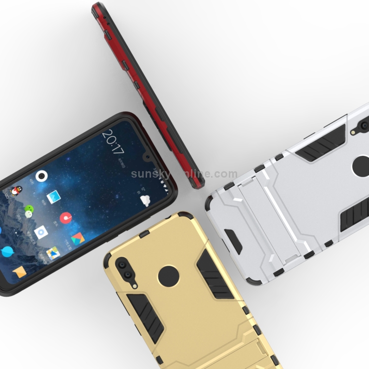 Carcasa PC + TPU a Prueba de Golpes para Huawei Y7 (2019) con Soporte (Rojo)