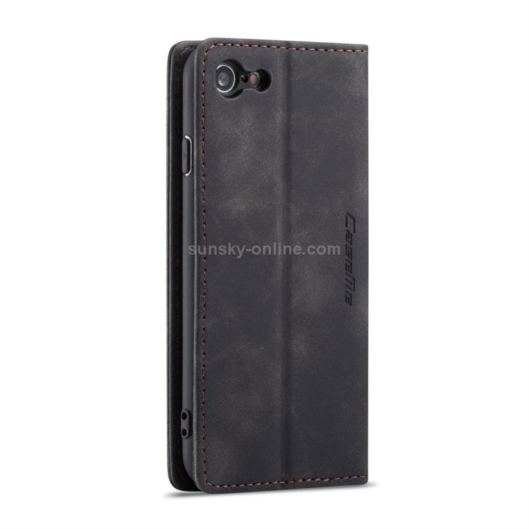 Estuche Multifuncional Caseme-013 de Cuero con Tapa Horizontal para iPhone 7/8 con Ranura para Tarjeta Soporte y Billetera (Negro)