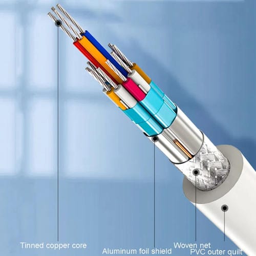 - Núcleo de Cable en cobre puro, chip de alto rendimiento, interfaz niquelada para reducción de pérdida de datos, Soporte para modos de Pantalla duplicada y extendida, plug and play