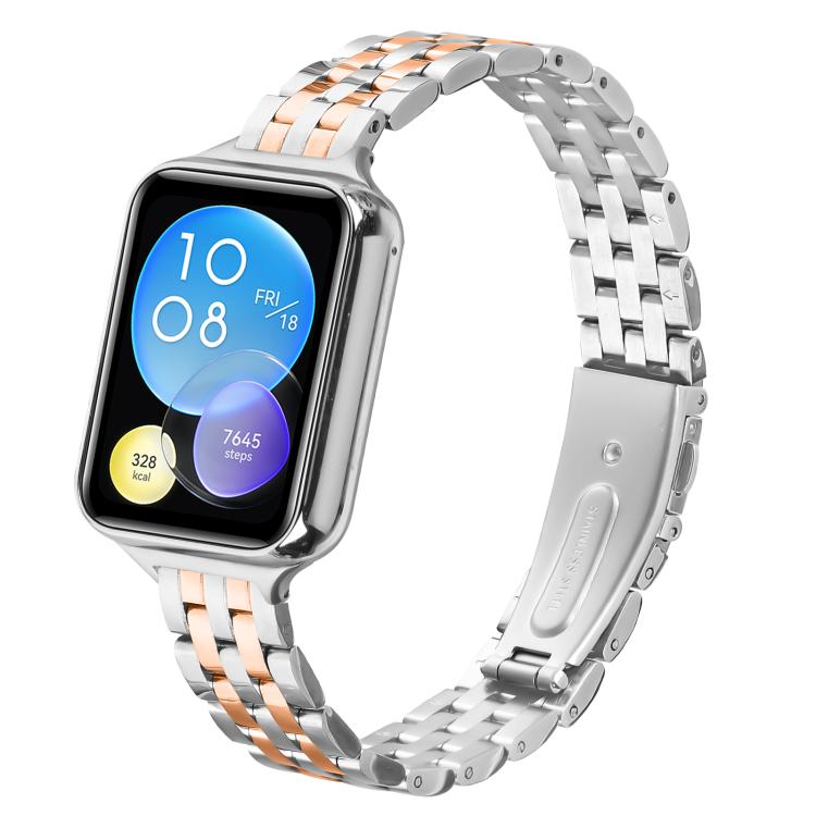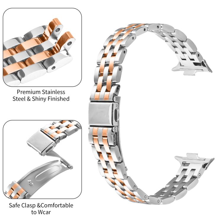 Correa de acero con hebilla de cinco cuentas para Xiaomi Mi Band 8 Pro (plata y oro rosa)